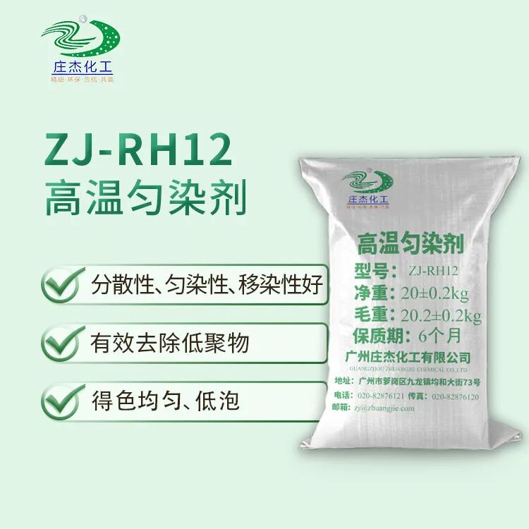 ZJ-RH12高温高压匀染剂是庄杰化工为涤纶织物高温高压染色开发的一款以特种表面活性剂为主要成分的高温匀染剂。