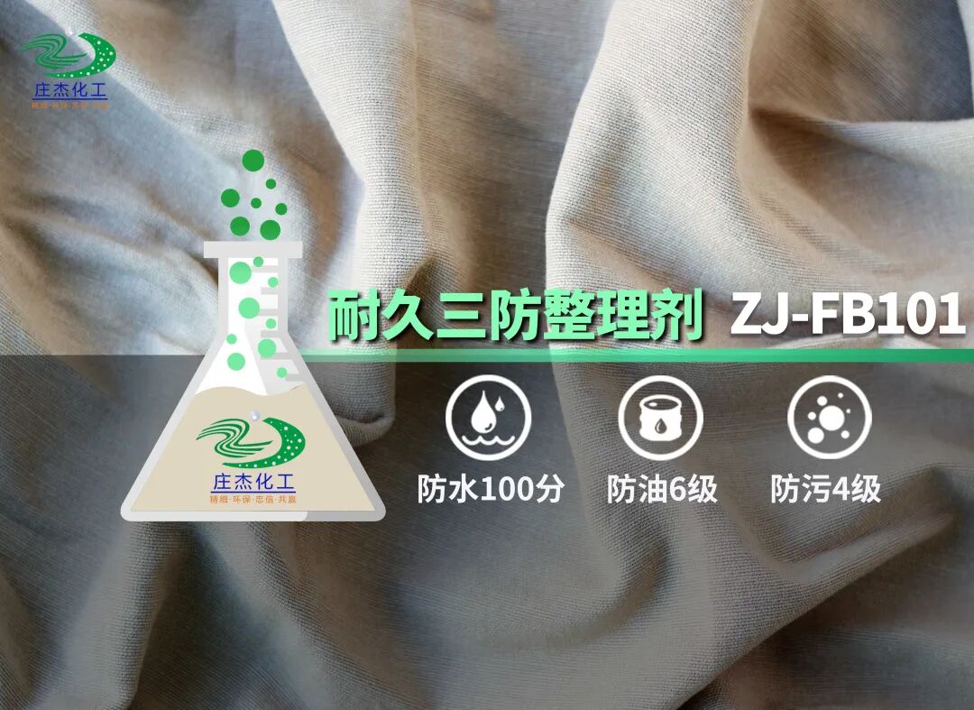 涤棉面料因其耐磨、色彩鲜艳、透气性好等优点,在服装、家居用品等领域被广泛应用。然而,涤棉面料的防油污性能却常常成为面料厂客户头疼的问题。涤纶纤维作为疏水性纤维,对油污的亲和力很强,容易吸附油污,难以洗涤。面对这一难题,面料耐久三防整理剂如何为面料厂客户解决? ZJ-FB101面料耐久三防整理剂: ZJ-FB101面料耐久三防整理剂是广州庄杰化工开发的一款基于六碳烷基的三防整理剂。经其整理后的面料具有高防水性能,防水100分(AATCC 22),防油6级(AATCC 118),防污4级;即使经过50次水洗,三防效果仍然保持优异;加工工艺简单,浸渍、浸轧、喷涂工艺均可使用;低黄变、低色变、不影响被整理面料色光;耐洗性好,整理后面料经多次水洗仍能保持优良的三防性能。 防水、防油、防污性能优异的ZJ-FB101面料耐久三防整理剂适用于纤维素纤维、尼龙、涤纶以及它们的混纺织物三防整理,可应用于牛仔、西装、织带、汽车内饰、工装面料等领域。