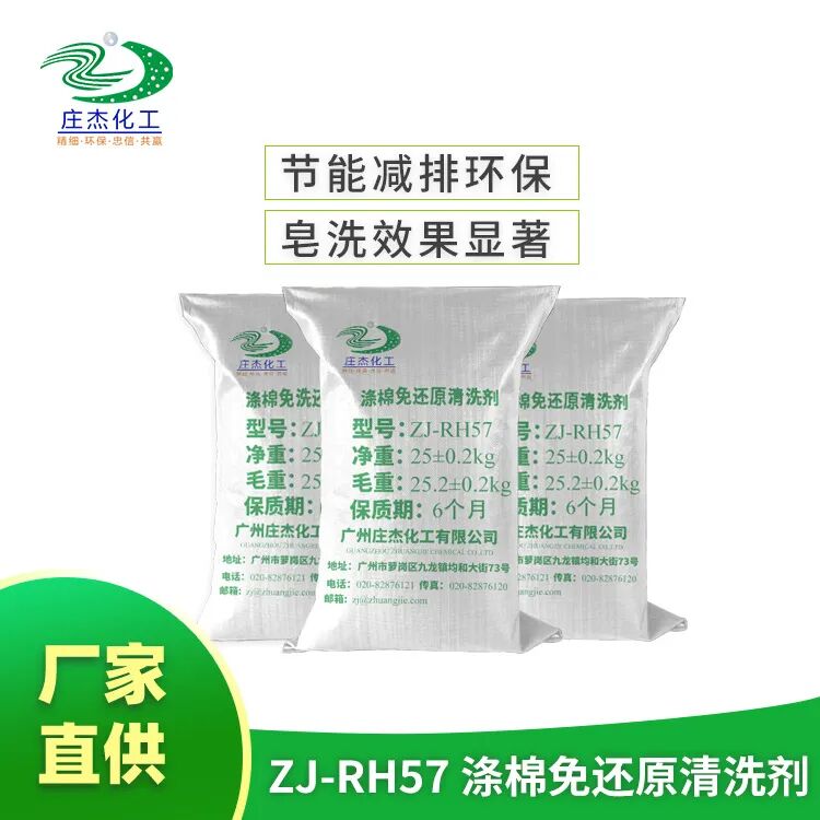 涤棉织物染色通常采用两浴法,即先用分散染料对涤纶部分进行染色,并经过还原清洗及多道水洗后再对棉部分进行染色。整个流程下来,需要大量的水、电、蒸气等,耗时耗力,给染整加工厂增加了生产及时间成本,不利于节省成本并降低了生产效率,也给污水处理带来巨大压力。涤棉免还原清洗剂能否解决这些问题呢?接下来我们了解一下涤棉免还原清洗剂有何作用! ZJ-RH57涤棉免还原清洗剂 ZJ-RH57涤棉免还原清洗剂是庄杰化工专门针对涤棉织物染色工艺长、能耗大、污水排污量大、效率低、成本高而开发的一款染整加工助剂。 使用ZJ-RH57涤棉免还原清洗剂可在涤纶部分染色后不用还原清洗而直接对棉部分进行染色,然后用ZJ-RH57涤棉免还原清洗剂进行皂洗,ZJ-RH57涤棉免还原清洗剂在皂洗过程中可有效去除涤棉织物上的分散染料和活性染料浮色及其他染整助剂,保证被加工织物各项色牢度。 整个流程下来,减少了还原清洗工序及水洗次数,提高了生产效率并降低了水、电、汽等能源消耗,减轻了染整加工厂家的生产成本及污水排放量。 高效环保、排污量少、皂洗性能优异的ZJ-RH57涤棉免还原清洗剂适用于涤棉、涤纶织物染色免还原清洗工艺,皂洗效果显著,对未固着染料及水解染料有较好的分散性,具有优异的防沾净洗能力,是一款节能减排产品。