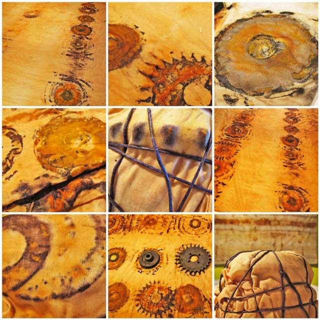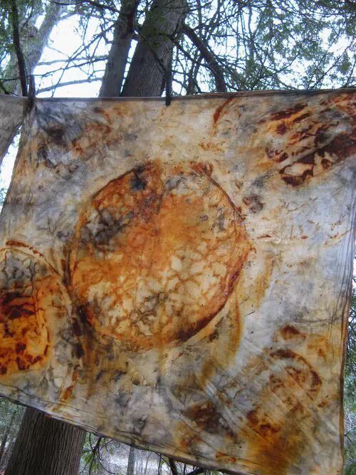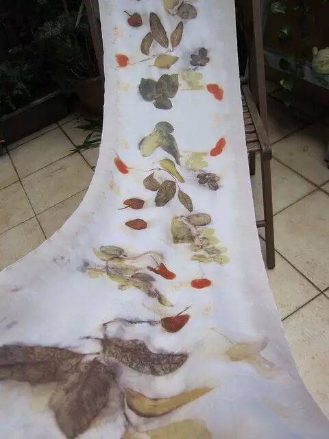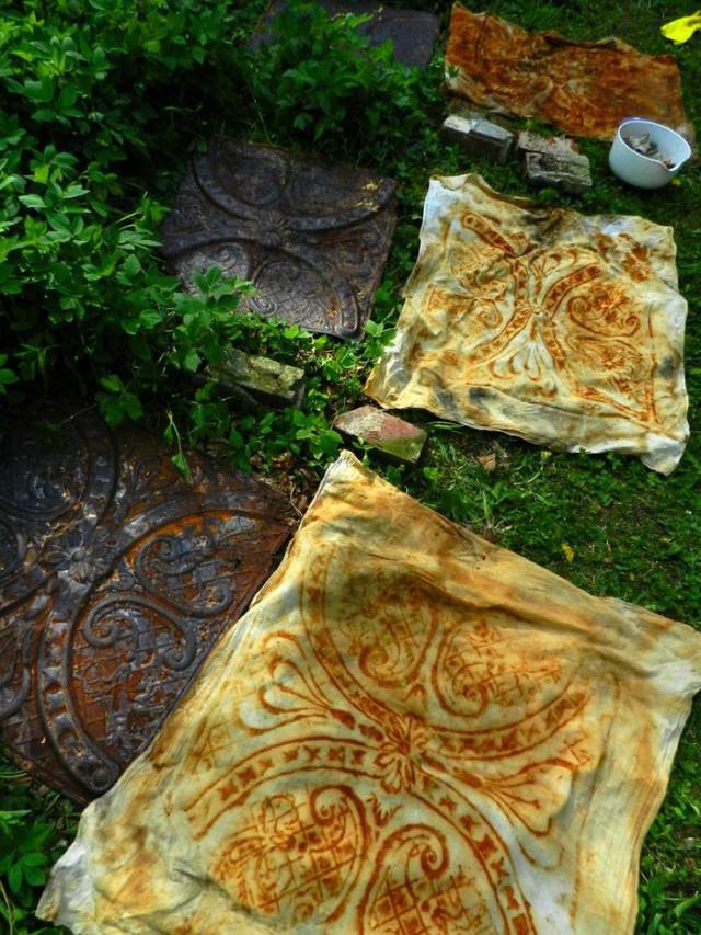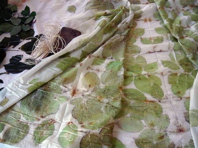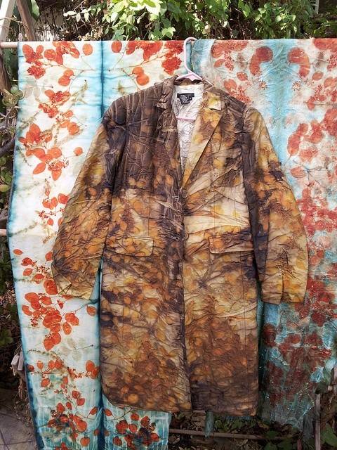 这个工艺先由澳大利亚纺织艺术家India Flint(尹杜-弗林特)利用新鲜植物的叶、茎、花和果将其色素及形状染制到布料而开发研制的植物染新工艺;经过更多染艺人士大胆尝试和探索,此工艺的染色素来源已扩展至金属器件、染过色的布料等,利用这些元素,为纺织印染增添了一支极具特色和创意的印花奇葩!