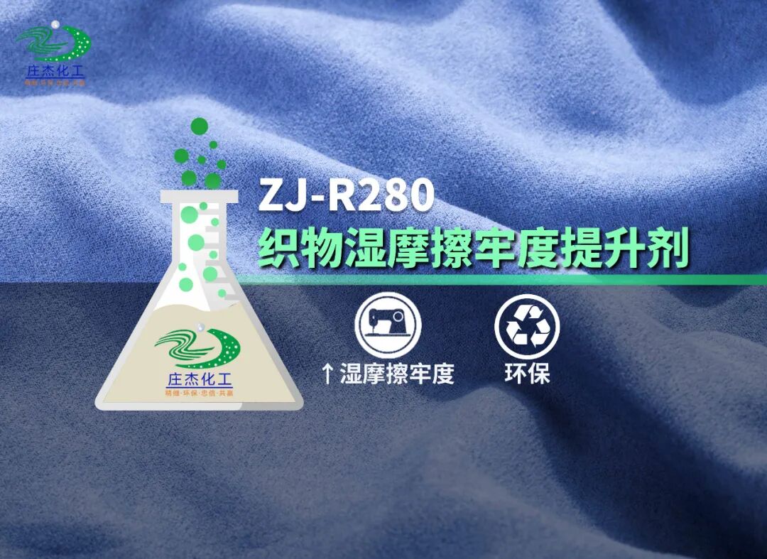 随着纺织印染行业的发展,对校服、工装等纺织面料质量提升了要求,特别是湿摩擦牢度方面提出了更高的标准。对于出口欧美发达国家的纺织品,明确提出深颜色织物的湿摩擦牢度要达到3级或以上。 湿摩擦牢度是指在潮湿环境下,纤维面料与其他物体相互摩擦时不易脱色、掉色的稳定性。为解决织物湿摩擦牢度差的问题,以下针对这点提出了多种解决方案并了解织物湿摩擦牢度提升剂的应用优势! 解决方案 1)染料选择 选择水溶性和直接性适宜的染料可以提高染料的固色率,从而提高湿摩擦牢度。水溶性过低会造成染料不易溶于水,使得染色不均匀,过高则会导致染料分子易溶于水而脱离纤维。直接性太高会形成浮色,容易脱落,太低会影响固色率。 2)优化染整工艺 选择了适宜的染料后,必须与合理的染整工艺相结合才能提高织物的上染率及固色效果。制定合理的染整工艺,在染色的过程中可以促进染料向织物内部扩散和渗透,保证染料充分与纤维结合,使得染色均匀,减少浮色。 3)加强织物前处理 染色前对织物进行充分烧毛、退浆、煮漂等前处理工艺,会在一定程度上提高上染率。织物表面的光洁程度会使湿摩擦牢度受到明显影响,而不只是织布的纹路会影响光洁程度,织物本身表面的绒毛也是影响光洁度的原因之一。 4)除去浮色 浮色是那些没有和纤维反应以及已经水解的染料,这些染料极易从织物上脱落下来,染色后要进行充分的水洗和皂洗,尽可能去除浮色,提高湿摩擦牢度。但是在水洗过程中要注意水质的问题,避免使用硬水。 5)用合适的固色剂或湿摩擦牢度提升剂 选择合适的染料、优化染整工艺、加强织物前处理等是可以在一定程度上提高织物的湿摩擦牢度,但是效果有限。如果想要进一步提高织物的湿摩擦牢度还需要使用固色剂或湿摩擦牢度提升剂,性能良好的湿摩擦牢度提升剂可以提高湿摩擦牢度半级以上。以庄杰化工研发的ZJ-R280织物湿摩擦牢度提升剂为例,可在不改变织物原有手感、色光的情况下提高面料湿摩擦牢度1~2级,可与硅油、软油等柔软剂同浴使用,被广泛用于纤维素纤维直接、活性、硫化染料、酸性、分散染料和印花织物的固色处理。