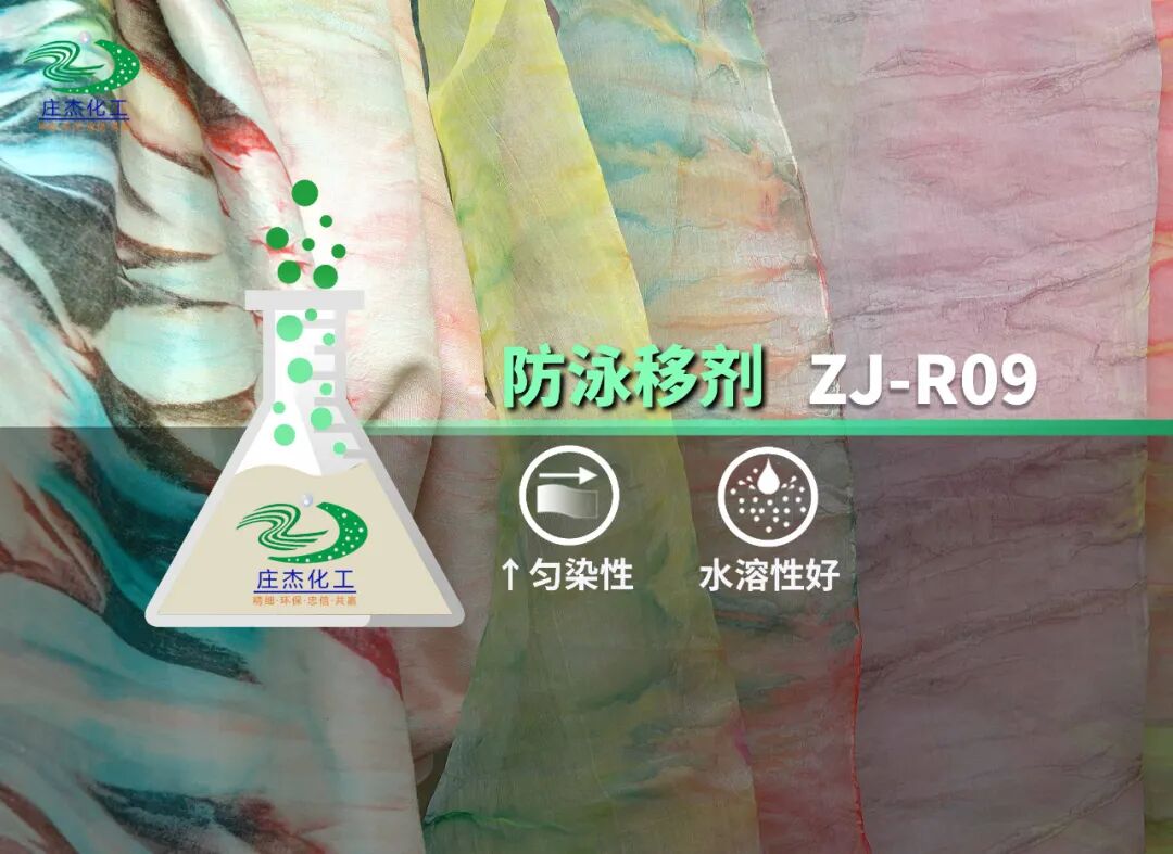 在纺织品染色或印花特别是涂料染色、悬浮体染色、印花或是热熔染色过程中,为防止产生中边色差、反面与正面色差(阴阳色)、条影条花等庛病,通常会加入防泳移剂。 ZJ-R09防泳移剂是庄杰化工开发的一款以聚丙烯类化合物为主要成分的纤维素纤维及其混纺织物的染色、印花用防泳移剂。在染色或印花过程中加入本品可以有效地防止染料泳移,提高其匀染性,避免染色织物出现阴阳面、左右色差、条花等现象。 特别在细薄织物染色中,预烘烘干条件较差的情况下加入本品,可以有效地避免染料在高温条件下发生泳移,产生色差及条花,达到良好的匀染效果。用于分散染料热熔染色可减少染料升华,具有一定的增深效果。水溶性良好,在使用中不存在粘辊问题,可减少机台清洁次数提高生产效率;用于涂料染色可缩短工艺流程,提高染色质量,降低染色成本。不含游离甲醛等有害物质。 防泳移性能优异、不沾辊、有一定增深效果的ZJ-R09防泳移剂用于纤维素纤维、及其混纺织物的染色和印花工艺中,可有效提高染色、印花的匀染性,避免色差、色花等庛病产生。